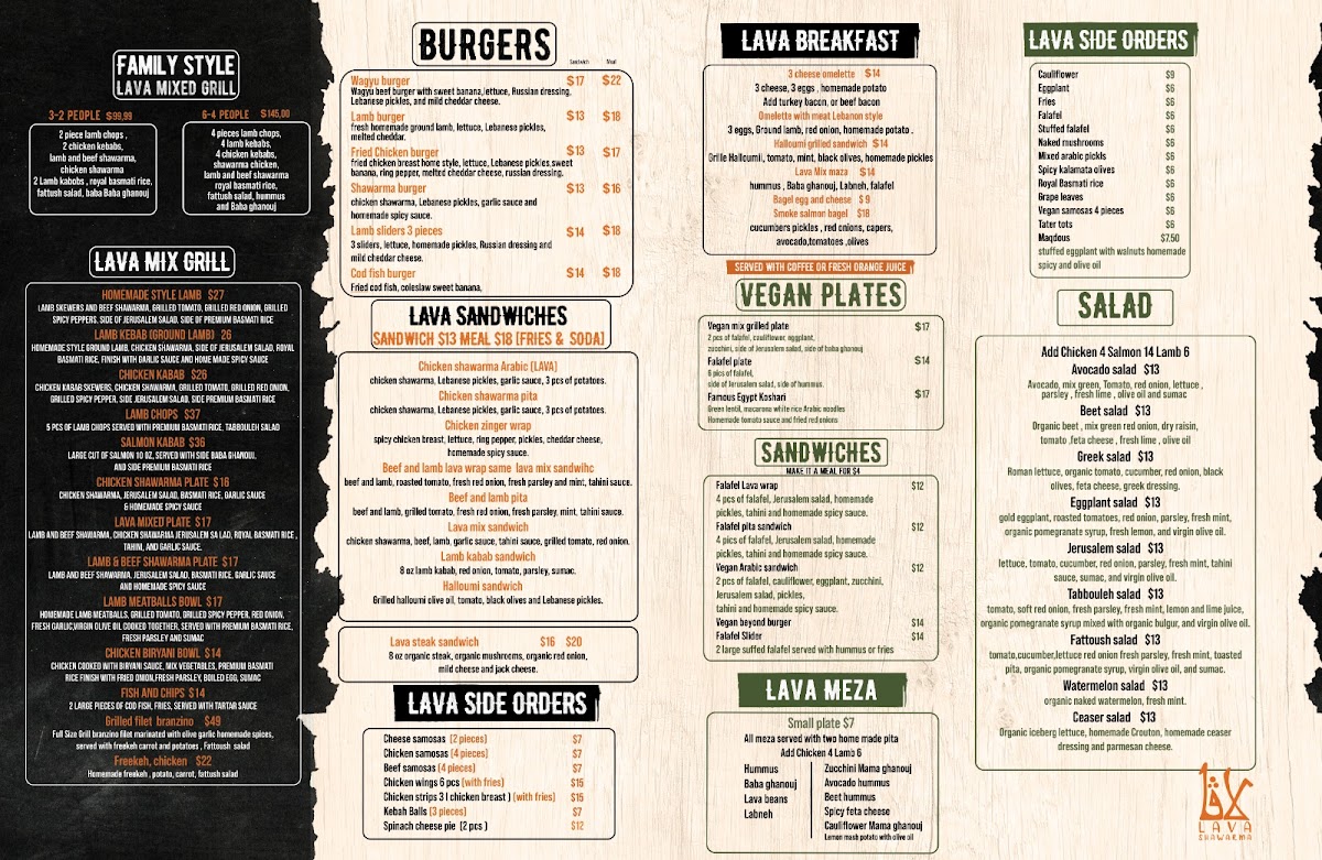 Lava Shawarma Menu